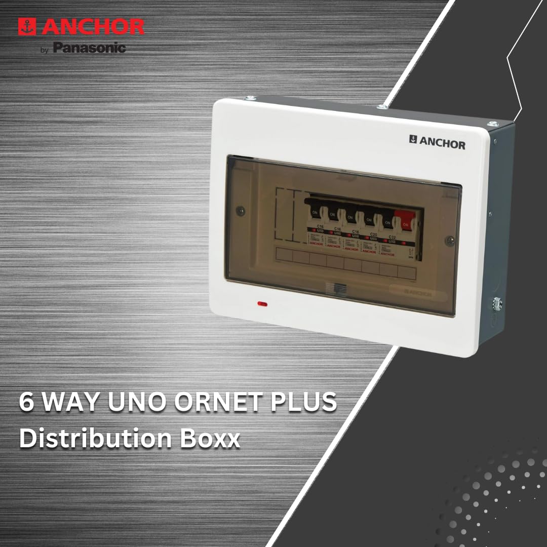 The Anchor by Panasonic UNO Plus 6 Way SPN Distribution Board is a high-quality, reliable electrical distribution board designed specifically for home applications. Known for its robust build, safety features, and easy installation, this distribution board ensures seamless and safe management of electrical circuits within your household. Here's a detailed description of its features and benefits: