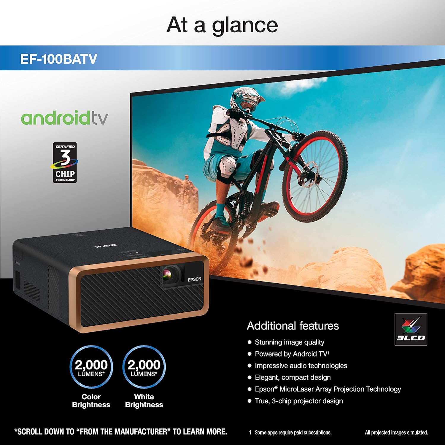 The Epson EF-100 stands out as a versatile and high-performance projector, combining advanced laser technology with smart features and a compact design. It is well-suited for a variety of applications, including home entertainment, business presentations, and casual viewing.