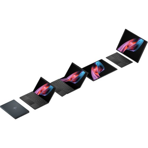 The HP Spectre Foldable 17-cs0097nr is a premium 3-in-1 foldable laptop that functions as a laptop, desktop, and tablet, offering great versatility. It comes with a sleek Space Blue magnesium alloy chassis and a flexible OLED display, designed for productivity, entertainment, and portability.